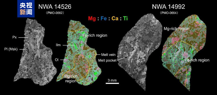 记者从中国科学院紫山天文台获悉,天文台天文科学团队近日对两块月球陨石进行了详细研究,首次揭示了30亿年前的月球岩浆供给事件,为了解月球晚期热演化历史提供了重要证据。相关研究近期发表在国际期刊Acta Geochemistry and Astrochemistry上。年轻的玛丽安玄武岩是研究月球晚期火山活动的重要目标。科学界普遍认为,自月球形成以来,月球内部的玄武岩浆活动以简单结晶为主,缺乏与地球岩浆房中常见的动力过程类似。研究团队利用扫描电子显微镜和电子显微镜等分析技术,对2021年发现的两块月球陨石NWA 14526和NWA 14992进行了详细研究。电子探针。 △月球陨石NWA14526和NWA14992的背散射电子图像和X射线元素表面扫描图像。研究结果表明,两块月球陨石在岩石结构、矿物成分、地球化学特征和结晶年龄等方面非常相似,处于配对关系。两者都表现出独特的岩性二分法,包括富镁岩性和富铁岩性。研究小组认为,这种不寻常的岩性二分法是由于岩浆供应造成的。基于此,研究团队提出了同源岩浆供给模型。大约30亿年前,富含镁的岩浆从早期内部侵入月球,在岩浆房中部分结晶,然后注入相对富含铁的演化岩浆的“接力棒”。两者混合反应,最终形成两种岩石共存的结构。这是岩浆补给过程第一次被明确证实。保存在月球样本中。一系列研究结果表明,虽然月球通过缓慢的长期冷却过程逐渐失去“活力”,但在其“寿命”后期(约30亿年前),它可能进行过供给、混合岩浆等复杂活动,维持内部动态的岩浆系统。这表明月球“中世纪”甚至“晚期”岩浆的演化比之前想象的要复杂得多、持久得多(央视新闻)。